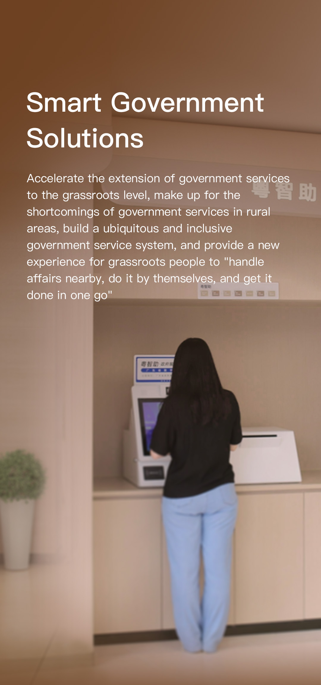 深化“數(shù)字政府”建設(shè),提升政務(wù)服務(wù)能力,進(jìn)一步推動(dòng)政務(wù)服務(wù)向基層延伸,實(shí)現(xiàn)基層群眾辦事“就近辦、自助辦、一次辦成”。